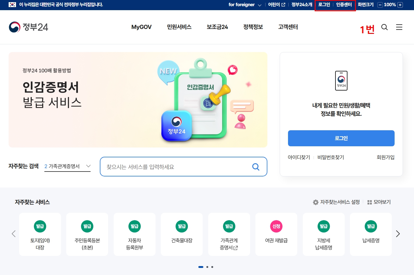정부24는 정부의 민원 서비스, 정부혜택(보조금24), 정책정보/기관정보 등을 한 곳에서 한 눈에 찾을 수 있고 각 기관의 주요 서비스를 신청·조회·발급할 수 있는 대한민국 정부 대표 포털입니다